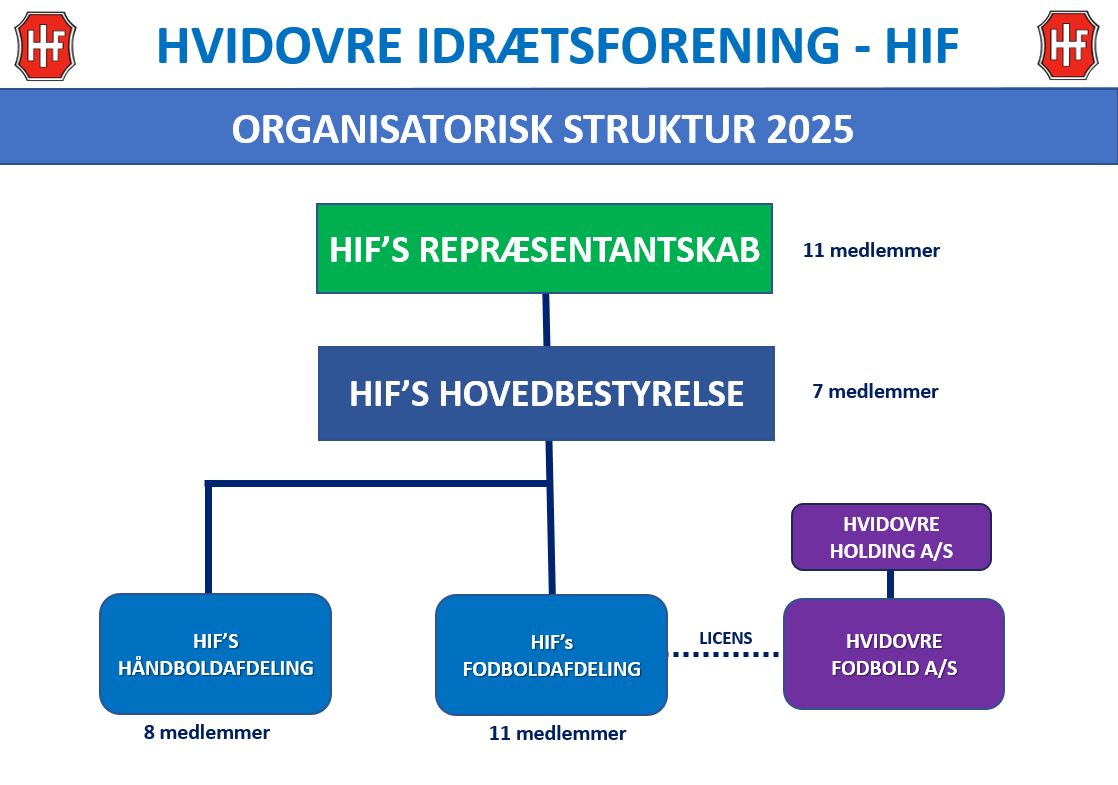 Yderligere detaljer vedrørende organisationsstruktur i såvel fodbold- som håndboldafdelingen kan ses via dette link: https://www.hif.dk/
